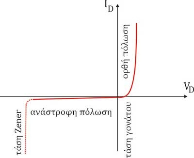 Όπου το ρεύμα ορθής φοράς ID της διόδου αυξάνει πάρα πολύ γρήγορα με την αύξηση της τάσης VD
