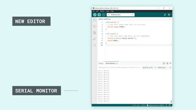 Μία από τις πιο σημαντικές αλλαγές που εισήχθησαν με το Arduino IDE 2 είναι ο ενσωματωμένος Serial Monitor. Οι παλαιότερες εκδόσεις της εφαρμογής, είχαν ένα εξωτερικό παράθυρο που αντιστοιχούσε στη θύρα/πλακέτα που επιλέγαμε.